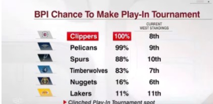 湖人队很可能在常规赛中排名第 11 位。